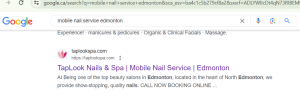 Based on search results at google.ca, the TapLook Nails & Spa brand with our mobile nails service is currently in the Top 5 position on Google’s ranking order.